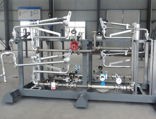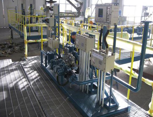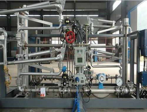油品定量裝車(chē)橇裝組是指將每一個(gè)裝車(chē)鶴位內(nèi)的儀表和設(shè)備集成在一個(gè)專(zhuān)用的框架結(jié)構(gòu)內(nèi),儀表和設(shè)備包括裝車(chē)鶴管、流量計(jì)、防溢油靜電報(bào)警控制器、壓力變送器、裝車(chē)流量控制閥、緊急切斷閥,裝車(chē)泵、批量控制器等, 只預(yù)留工藝連接口和控制電源和通訊接口,這個(gè)整體集成部分稱(chēng)為裝車(chē)橇。與傳統(tǒng)的裝車(chē)控制系統(tǒng)就地組裝比較,裝車(chē)橇可以節(jié)省現(xiàn)場(chǎng)設(shè)計(jì)和現(xiàn)場(chǎng)施工量,縮短項(xiàng)目工期,提高裝車(chē)控制系統(tǒng)的質(zhì)量。